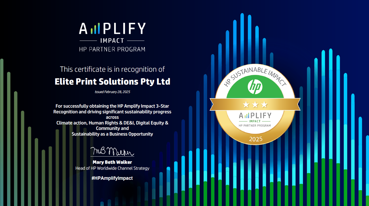As part of our dedication to sustainability, EPS is proud to be an HP Amplify Impact Partner. HP’s Amplify Impact program represents a significant step in the journey towards a more sustainable future in the IT industry. This program encourages and supports partners in making meaningful contributions to sustainability.
